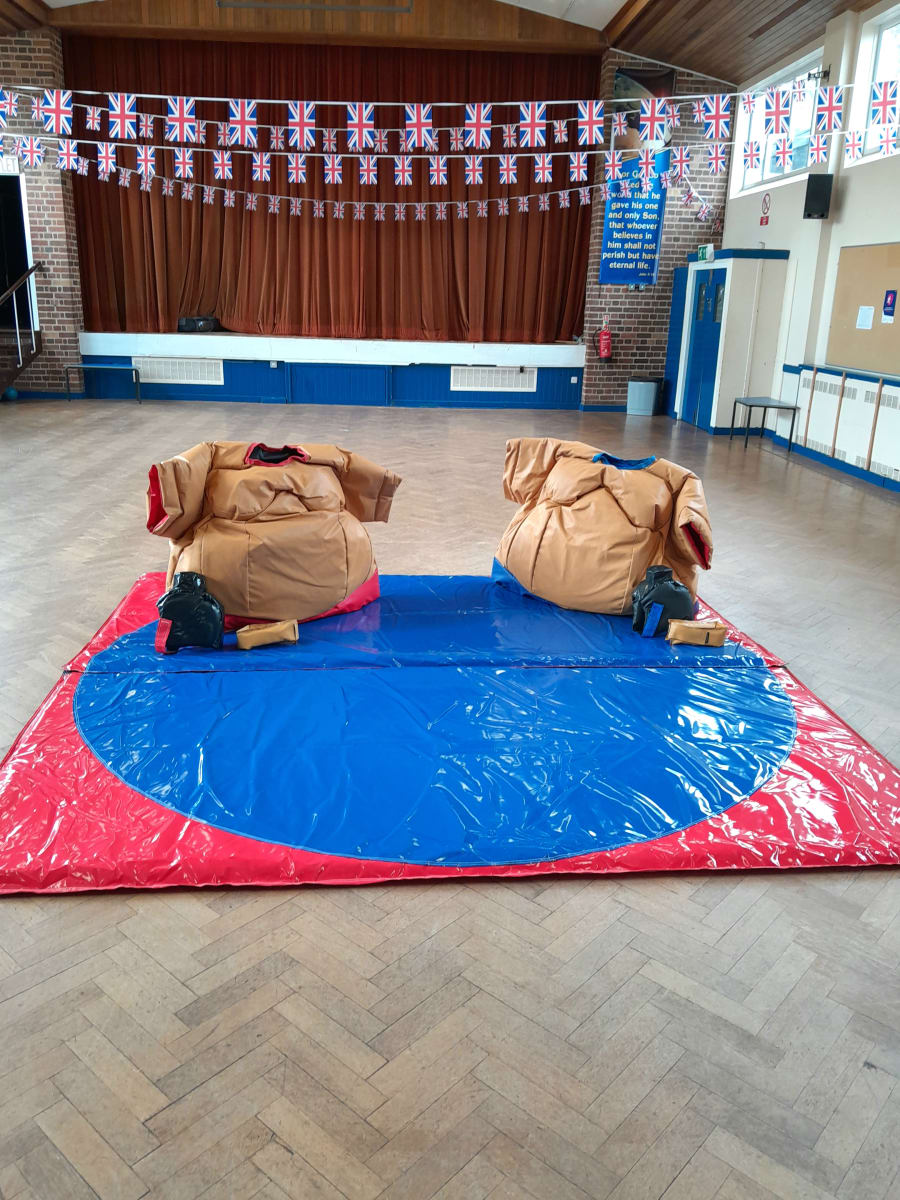 Our sumo suits are available to hire both indoors and outdoors (providing the weather is dry and not raining!)