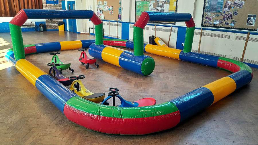Elevate the excitement by pairing the race track with one of our bouncy castles or soft play packages. This combination ensures a dynamic and unforgettable event experience that caters to the diverse interests of young guests.