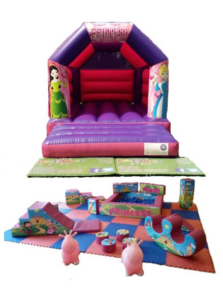 This Princess Package is another one of our popular packages and a must have for any little princess, with its bright pink colours and princess themed artwork. This Princess themed soft play and bouncy castle package consists of: