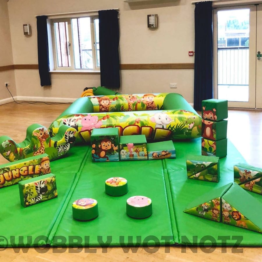 This Jungle Package is another bouncy castle and soft play hire package to be added to our collection at Little Scallywags Play, with it being made up of our 11x15ft Jungle theme Bouncy Castle and our Jungle Soft Play this will most certainly be a hugely popular package! A perfect choice for any party or event with its bright green colours and jungle themed artwork! This jungle themed soft play and bouncy castle hire package consists of: