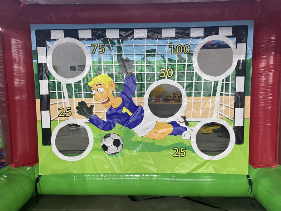 Get ready to showcase your football skills with our thrilling inflatable penalty shootout. You'll have three shots at goal to score the most points and see who comes out on top. Suitable for both children and adults, this game is guaranteed to bring out the competitive spirit in everyone.